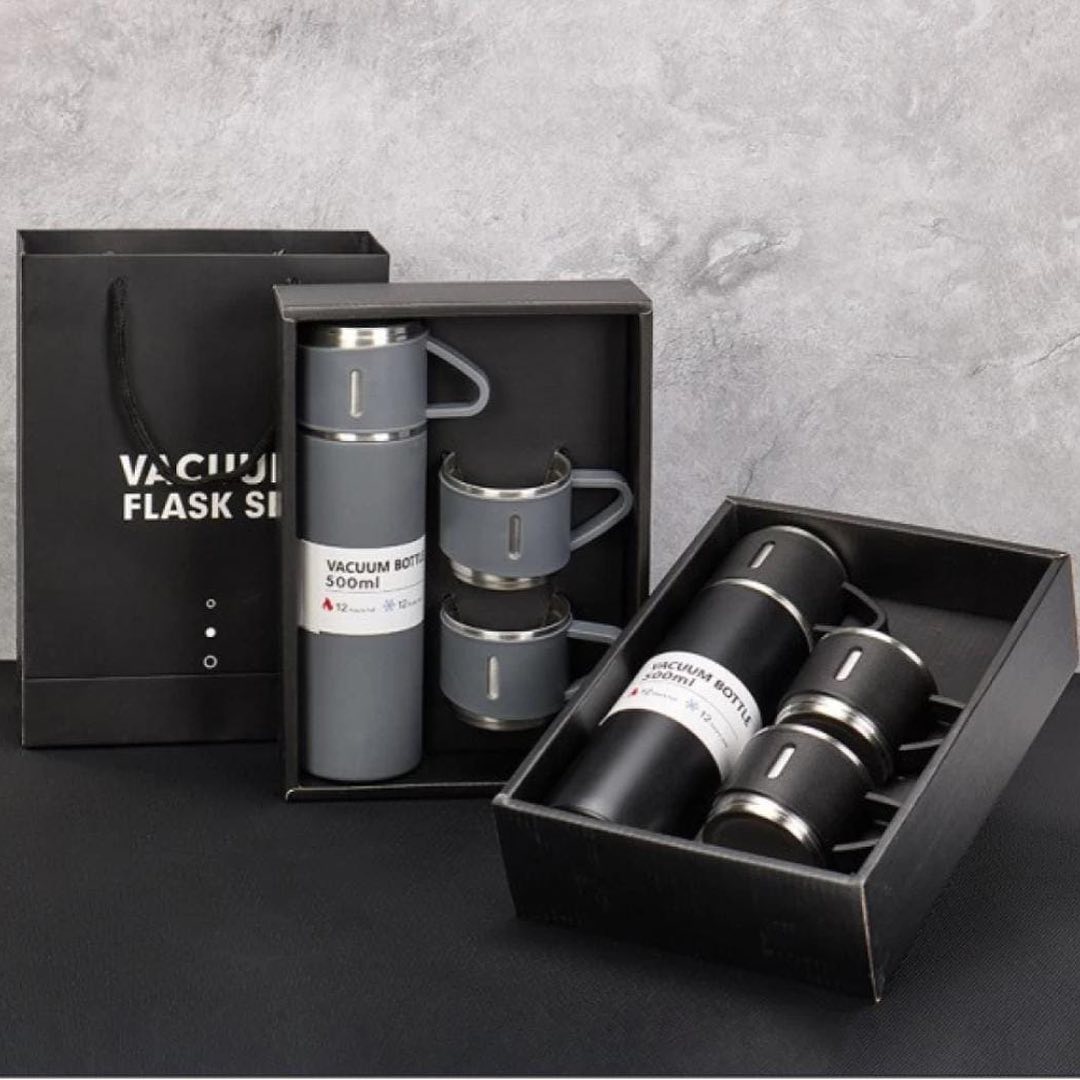 Vacuum flask set চা ও কফি ছাড়া বর্তমান সময়ে আমাদের চলেই না। কিন্তু সবসময় গরম চা ও কফি পাওয়া কিছুটা কষ্টকর। তাই আপনার জন্য নিয়ে এলাম ৩ টি কাপ সহ ফ্লাক্স সেট। চা প্রেমী কিংবা কফি প্রেমী প্রিয় মানুষটিকে যদি এই উপহার টি দিতে মিস করেন তাহলে আপনার প্রিয় মানুষটি বড় ই অভাগা। নিজের জন্য কিংবা ফ্যামিলির জন্য ও নিতে পারেন।